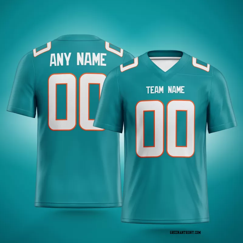 Explore the Printed Customized Aqua White White Football Jersey – a blend of vibrant colors and personalization, designed to make you stand out on the field. Perfect for football enthusiasts seeking a unique touch.