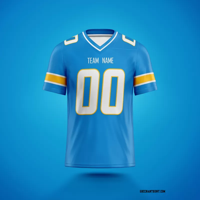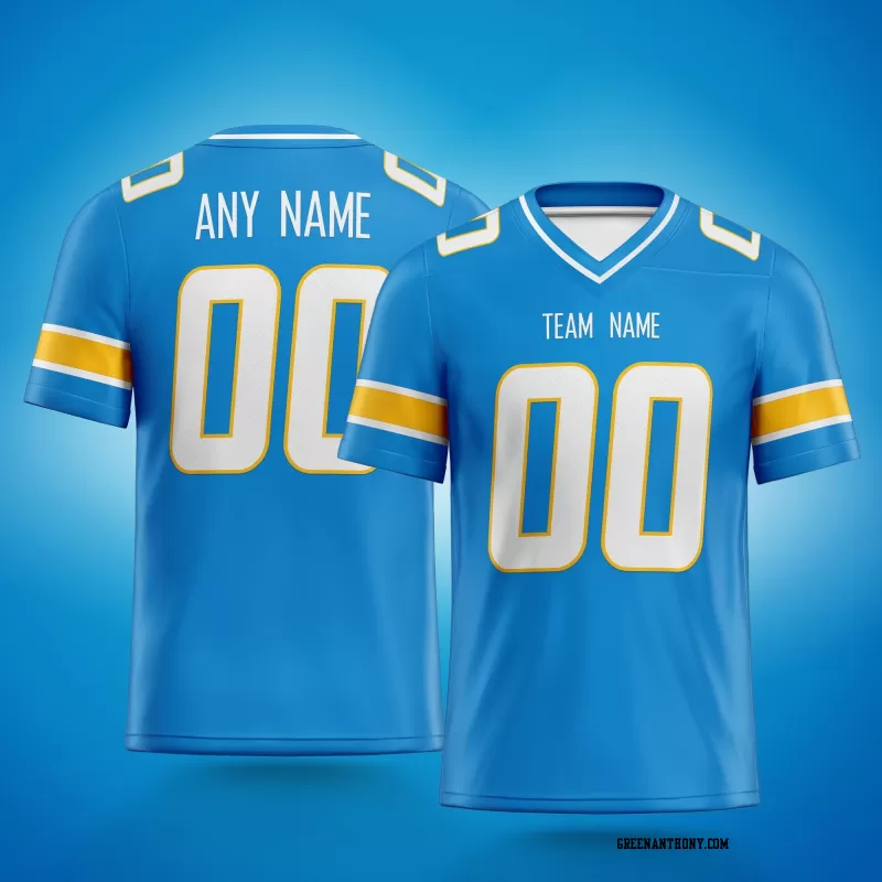 Explore the Printed Customized Power Blue White White Football Jersey – a blend of vibrant colors and personalization, designed to make you stand out on the field. Perfect for football enthusiasts seeking a unique touch.