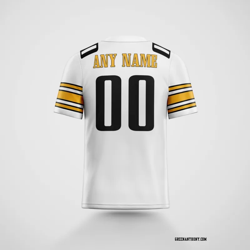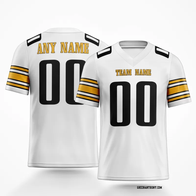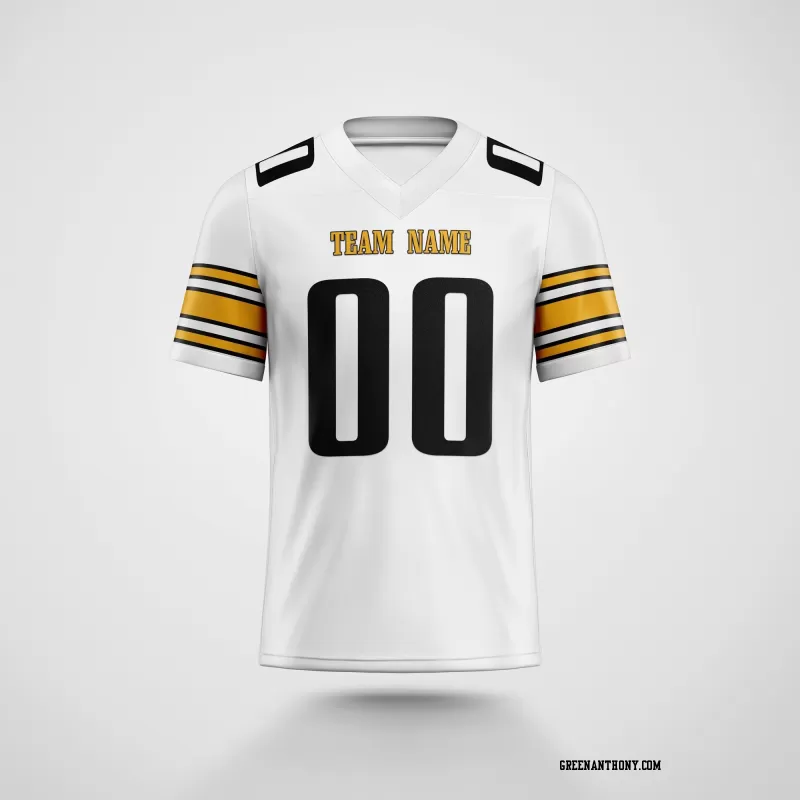 Explore the Printed Customized White Black Yellow Football Jersey – a blend of vibrant colors and personalization, designed to make you stand out on the field. Perfect for football enthusiasts seeking a unique touch.
