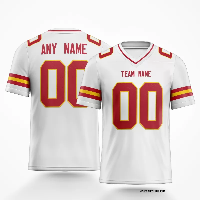 Explore the Printed Customized White Red Red Football Jersey – a blend of vibrant colors and personalization, designed to make you stand out on the field. Perfect for football enthusiasts seeking a unique touch.