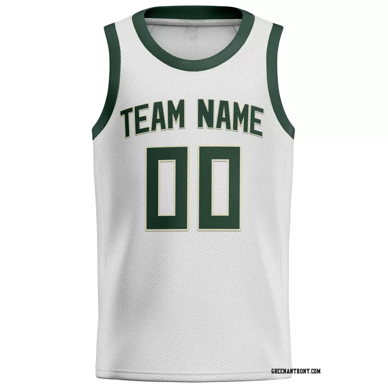 Stitched Customized Association White Green Green Basketball Jersey