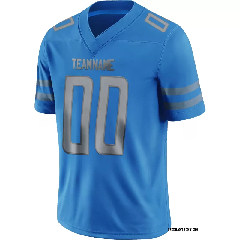 Explore the Stitched Customized Blue Gray Gray Football Jersey – a blend of vibrant colors and personalization, designed to make you stand out on the field. Perfect for football enthusiasts seeking a unique touch.