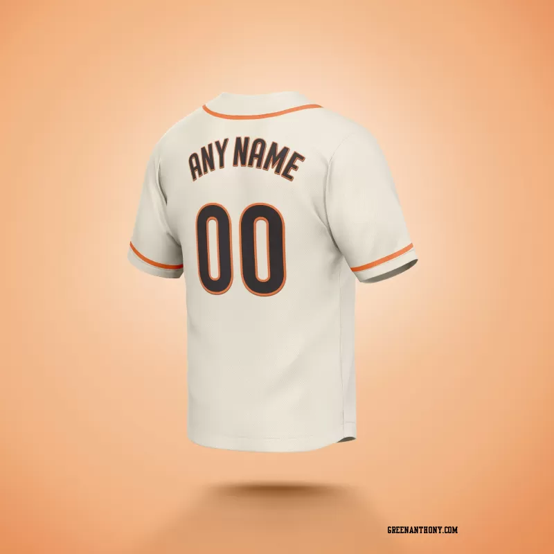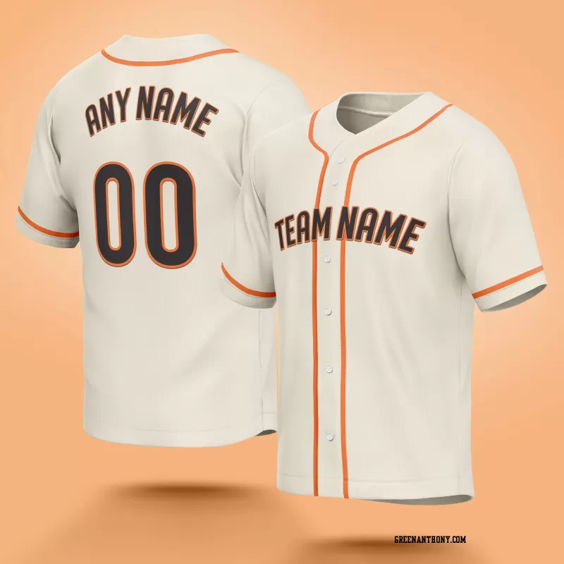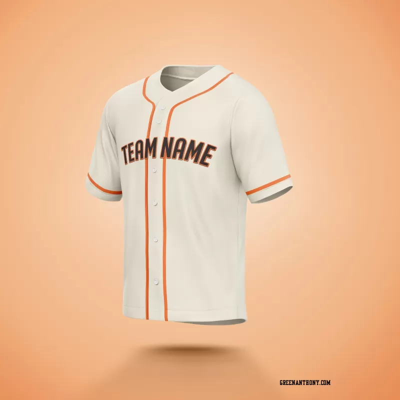 Explore the Stitched Customized Cream Black Orange Baseball Jersey – a blend of vibrant colors and personalization, designed to make you stand out on the field. Perfect for baseball enthusiasts seeking a unique touch.