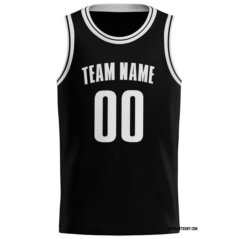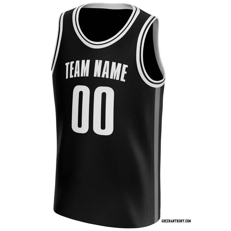 Explore the Stitched Customized Icon Black White White Basketball Jersey – a blend of vibrant colors and personalization, designed to make you stand out on the field. Perfect for basketball enthusiasts seeking a unique touch.