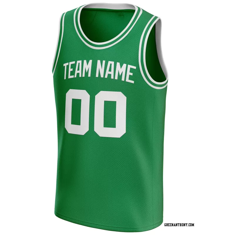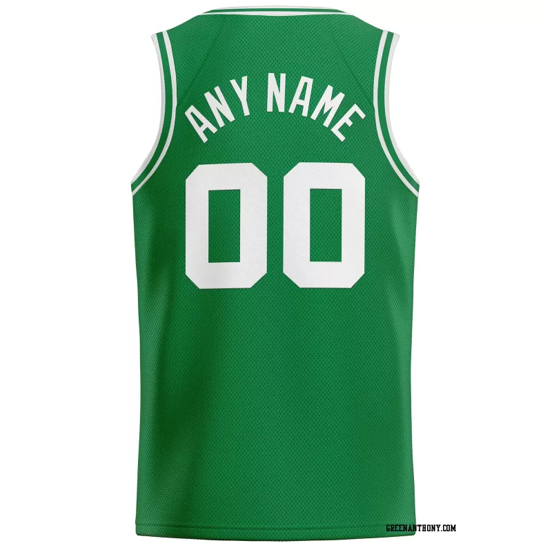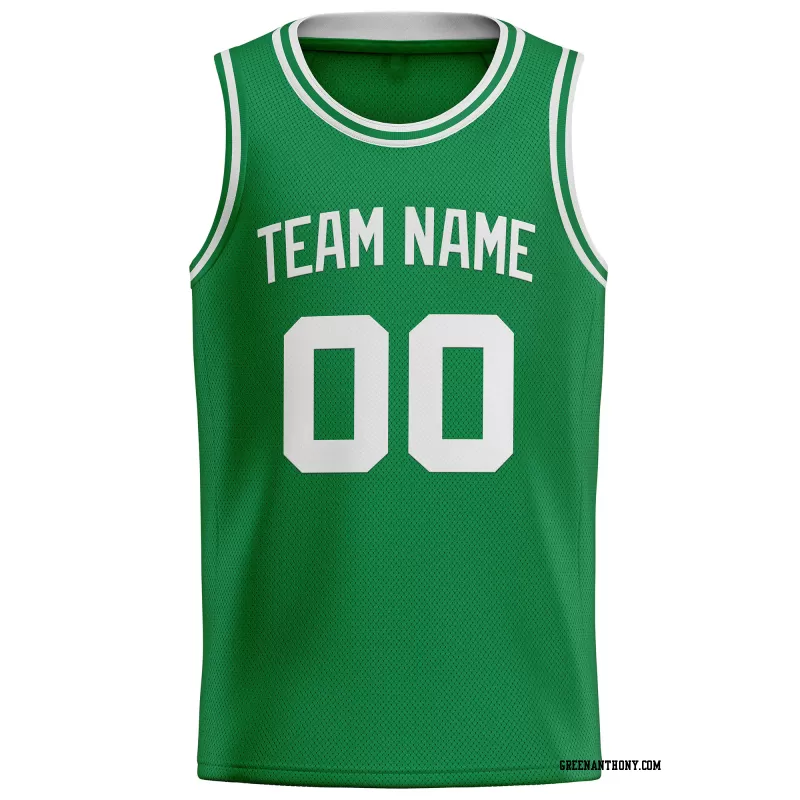 Explore the Stitched Customized Icon Green White White Basketball Jersey – a blend of vibrant colors and personalization, designed to make you stand out on the field. Perfect for basketball enthusiasts seeking a unique touch.