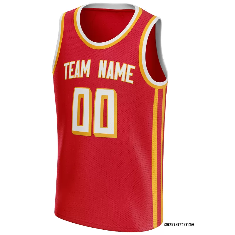 Explore the Stitched Customized Icon Red White White Basketball Jersey – a blend of vibrant colors and personalization, designed to make you stand out on the field. Perfect for basketball enthusiasts seeking a unique touch.