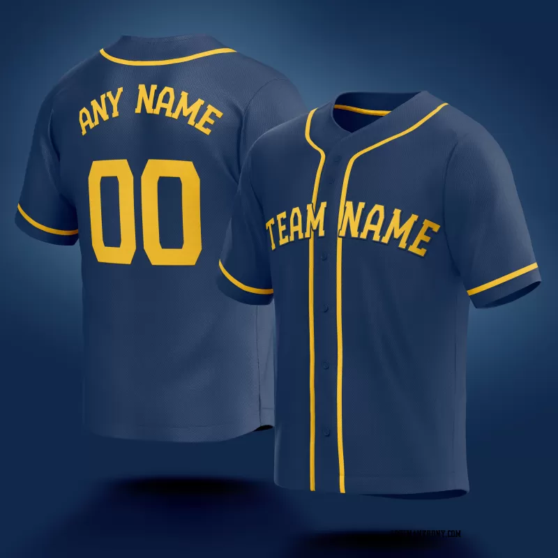Explore the Stitched Customized Navy Yellow Yellow Baseball Jersey – a blend of vibrant colors and personalization, designed to make you stand out on the field. Perfect for baseball enthusiasts seeking a unique touch.
