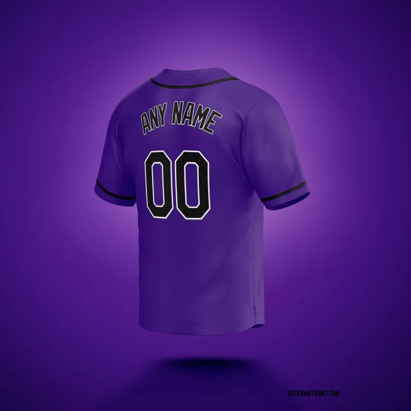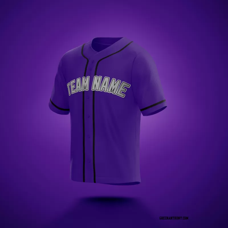 Explore the Stitched Customized Purple Black Black Baseball Jersey – a blend of vibrant colors and personalization, designed to make you stand out on the field. Perfect for baseball enthusiasts seeking a unique touch.