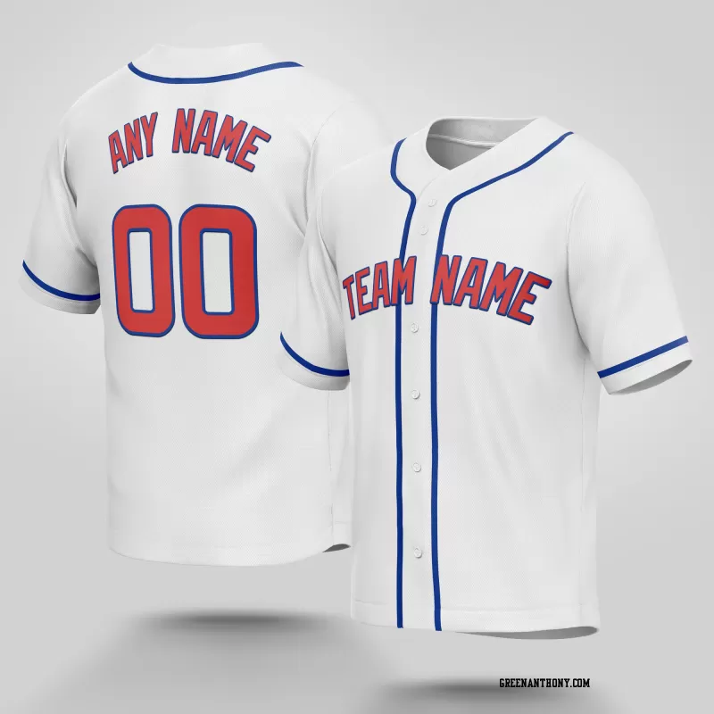 Explore the Stitched Customized White Red Blue Baseball Jersey – a blend of vibrant colors and personalization, designed to make you stand out on the field. Perfect for baseball enthusiasts seeking a unique touch.